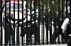 Secret Service på innsiden av gjerdet ved Det hvite hus må ha hjelp etter å ha blitt skadd i sammenstøt med demonstranter fredag kveld i Washington. Sikkerhetspolitiet stengte ned og låste av pressesenteret. Foto: Alex Brandon / AP / NTB scanpix