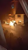 BRANN: Ein UTV parkert på Tryggheim vidaregåande skule på Nærbø tok fyr larudag morgon.