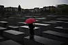 HOLOCAUST: En kvinne med rød paraply besøker holocaust-monumentet i Berlin mandag 1. november i år.