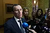 Utenriksminister Espen Barth Eide (Ap) snakker med pressen etter en spørretime på Stortinget tidligere i februar.