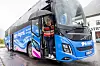 Høyres partileder og statsministerkandidat Erna Solberg på valgkampturné med valgbussen til partiet Høyre.