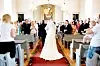 TRADISJONSTUNG SKIKK: Brudens far fører bruden opp til alteret før vielsen.