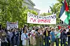 AKADEMISK BOIKOTT?: Flere studenter, akademikere og ansatte ved universitetet protesterer ved professorboligen i Oslo sentrum 14. mai i år der UiOs universitetsstyre diskuterer akademisk boikott av Israel.