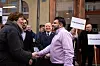TAKKNEMLIG: Arshad Jamil (t.h) fra Muslimsk Dialognettverk Norge er takknemlig for støtten fra andre ledere for tros- og livssynssamfunn. Her ønsker han Oslo-ordfører Marianne Borgen velkommen til moskeen. FOTO: Ingunn Marie Ruud, KPK.