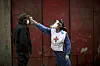 En frivillig fra Røde Kors måler feberen på en mann i Fraga-slummen i Buenos Aires etter at regjeringen beordret portforbud i kampen mot koronaviruset i Argentina. Foto: Natacha Pisarenko / AP / NTB scanpix