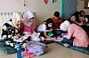 VEILEDNING: Engelsklæreren Zeina (med blått munnbind) hjelper 9. klasse med å skrive sine egne tekster i engelsk.