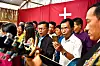 GUDSTJENESTE: Flyktningene fra Myanmar feiret gudstjeneste midt i flyktningleiren i India.