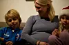 VÅKER: Familien venter sammen på Jesu fødsel og søskens ankomst.