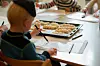 40 ÅR:: Den jødiske barnehagen i Oslo fyller 40 år. En liten gutt i barnehagen baker brød til sabbaten og pynter posen som brødet skal ligge i.