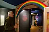 HANS PETTER FOSS: Omviser og ildsjel Hans Petter Foss har lagt ned mye egeninnsats i bibelutstillingen «Veien». Under Noahs regnbue står første del av trosbekjennelsen som går som en rød tråd gjennom utstillingen.