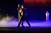 MULTIMEDIA: Gjennom en moderne multimedia-forestilling har den norske misjonen Yngvar Aarseth fått hele byen på bena for å se «Passion 21». Her er disiplene Peter og Judas i slåsskamp på scenen.