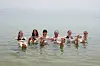SAMMEN: Familien fra Fitjar flyter i Dødehavet.