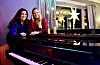 Venninnene Miriam Edvardsen og Oddrun Hyttedalen sørger for ekte julestemning mens de øver på årets reportuar. Keyboard, klokkespill, ipad og lyskastere med varme fargetoner fyller rommet som i noen uker nå har fungert mest som øvingslokale.