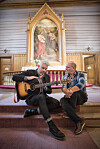 Her leser Erna og Jonas juleevangeliet sammen med et fint utvalg av Norges befolkning