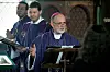 MESSEFEIRING: Ottar Myrseth er i dag biskop i Den nordisk-katolske kyrkja. I bakgrunnen diakon Håkon Johannes Andersen og den engelske presten Calvin Robinson.