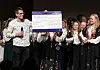 SJEKK: Elevrådet og russen overrakte symbolsk sjekk til Werner Larsen, leder i Misjonssambandet sørvest 14. Juni 2024.