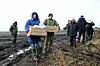 BIBLER: Bernt Greger Olsen (midt i bildet) er med og deler ut bibler til ukrainske soldater ved fronten før jul i 2015.