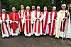SAMLET: Ni prester var involvert i ordinasjonshandlingen, fra venstre: Kjetil Homdal, Markus Snellman, Håvard Andreas Evensen, Martin Olai Torsvik – alle nyordinerte – og deretter Sakarias Ingolfsson, Eirik-Kornelius Garnes-Lunde, Erik Gauss, Alf Danbolt og biskop Torkild Masvie.