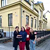 ÅLESUND: Amy Cook (USA), Bea Duffett (England), Viktor Boge (Ålesund), Simea Münger (Sveits) klare med kake til innsatte i Ålesund fengsel.