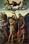 KRISTI DÅP: Kristi dåp er et maleri som ble ferdigstilt rundt 1475 i studioet til den italienske renessansemaleren Andrea del Verrocchio og generelt tilskrevet ham og hans elev Leonardo da Vinci.
